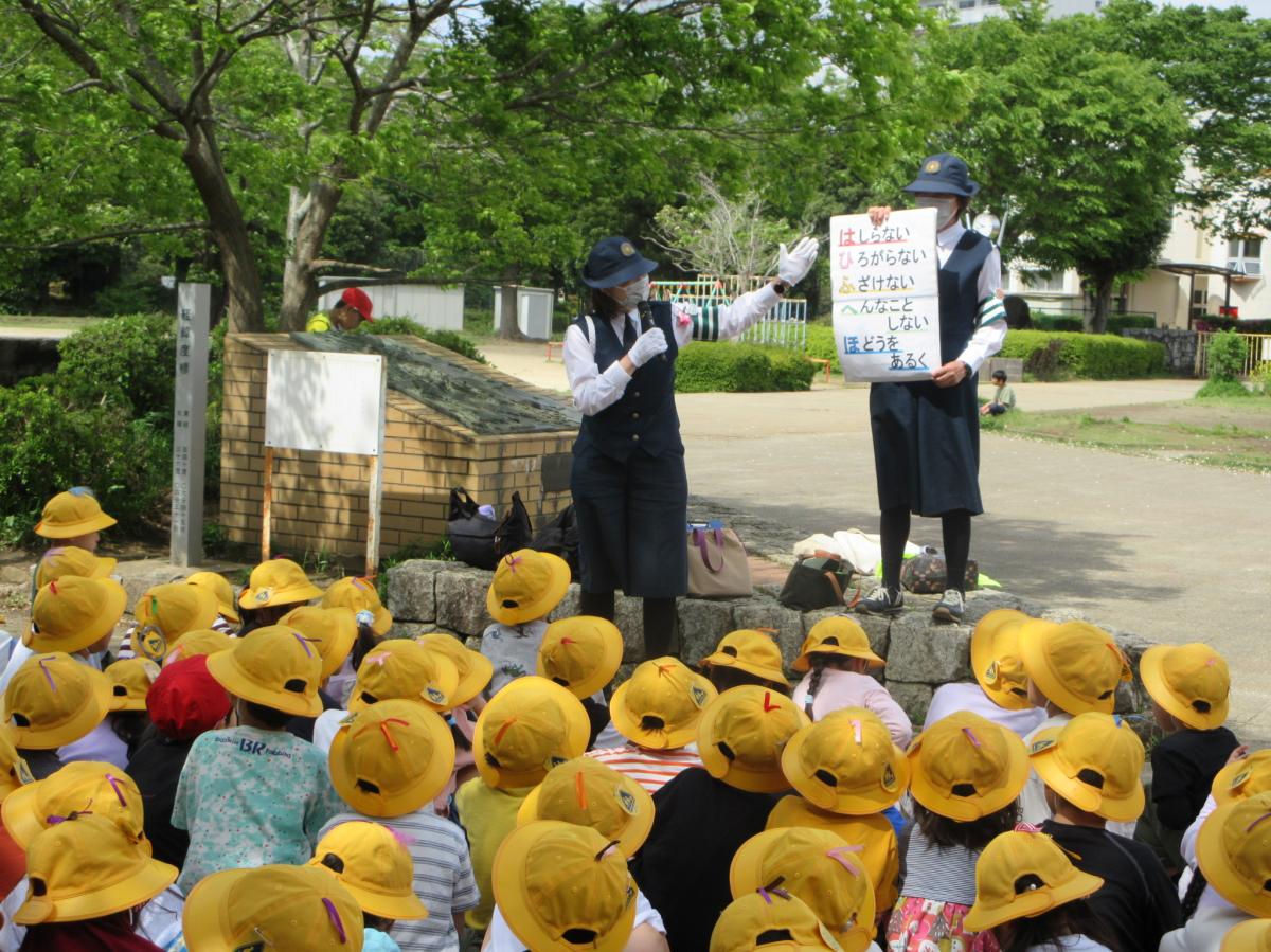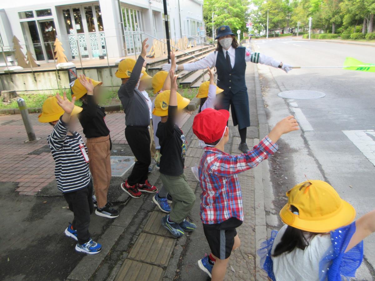 歩道を歩く時の「は・ひ・ふ・へ・ほ」を教えていただき、実際に歩道を歩いたり、横断歩道を渡ったりしました。