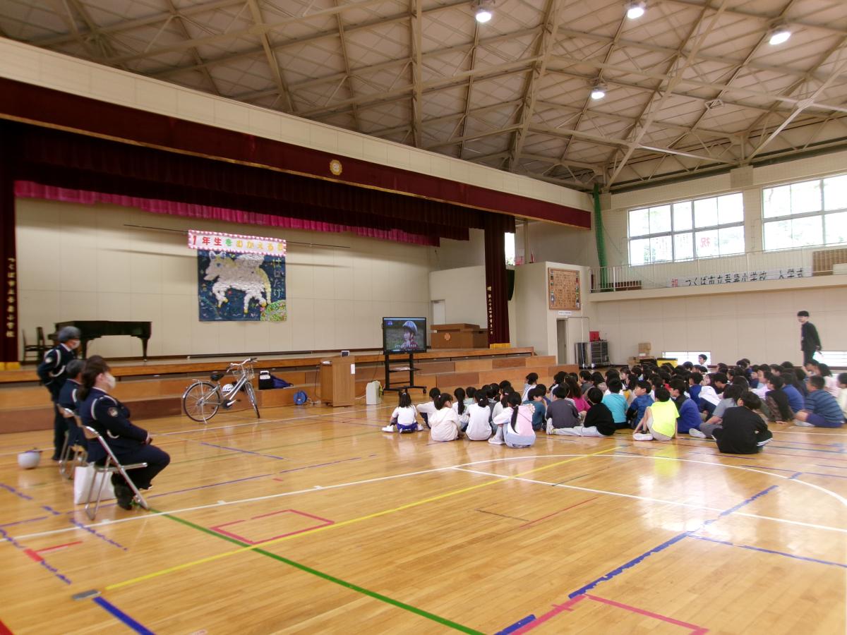3年生から6年生の交通安全教室を行いました。一昨日と同様に交通安全協会の方や警察の方に来ていただきました。自転車の乗り方についてのご指導を受けました。ヘルメットのかぶり方や自転車の点検の仕方、自転車の乗り方など丁寧に教えていただきました。子供たちにとっては、風船を使ったヘルメットの効果を調べる実験がとても心に残ったようです。ヘルメットをしっかり被ろうと思ったとの事でした。