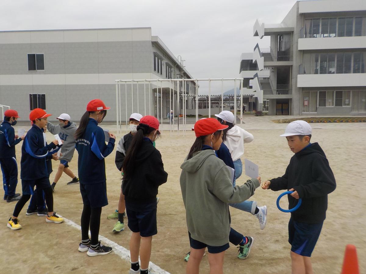 1組主催の学年レクでは、障害物競走が行なわれました。クイズや輪投げ、ペットボトルフリップをしたり、道をぐねぐね進んだりしながらバトンをつないでいきました。走り終わった人たちも精一杯クラスの応援をする様子が見られました。5年生も残りわずかです。