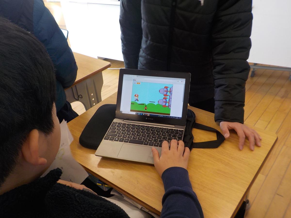 木曜日は5組、金曜日は4組による学年レクが行なわれました。5組は学級の係ごとにブースがあり、スタンプラリーをしながらプログラミングで作ったゲームの体験、漫画コーナー、クイズ、くじ引きなどを楽しむことができました。4組はお祭りのような出し物で、千本引き、○○すくい、射的、お笑いライブなどを楽しむことができ、各ブースで獲得したポイントで景品ゲットを目指しました。
