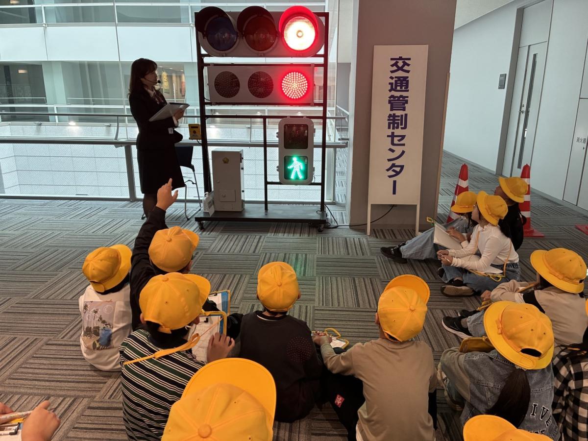 午前中は茨城県警本部で、110番通報や交通安全について真剣に学びました。本物の110番を受け付けている場所を間近で見ることができ、児童はキラキラした目で見学していました。