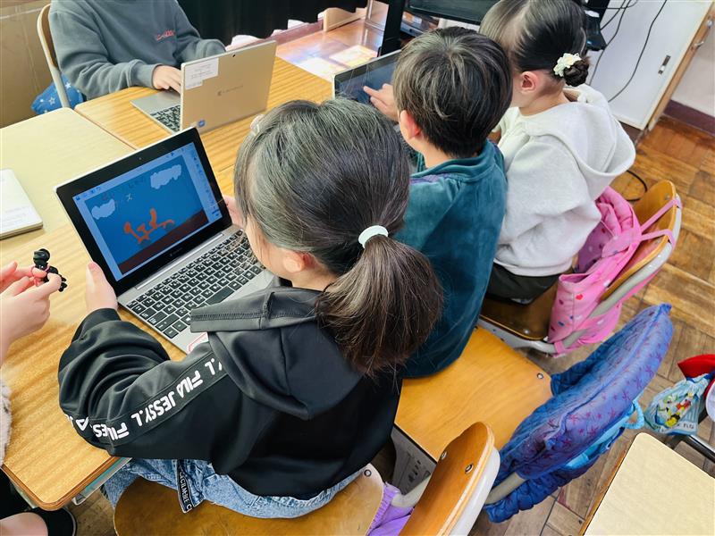子供たちは現在、先週行ったまちたんけんのまとめをがんばっています。パソコンをつかってお店のクイズを作っています。完成したらクラスでクイズ大会を行い、町探検で行けなかったお店のことも知ることができる時間にしたいと考えています。