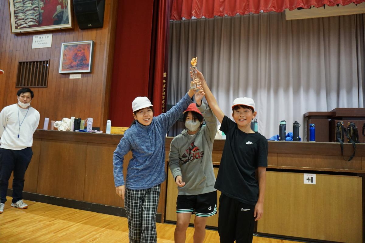 4時間目に5,6年で、年末ドッチボール大会を行いました。4月に行ったときは5年生が優勝し、6年生にとってはリベンジマッチです。今回は1回戦に、水泳指導の時に組んだ5・6年混合チームでので対戦、2回戦は1組チーム対2組チームの混合での対戦、3回戦は5年対6年で行いました。途中からボールを2個にするルールも採用して対戦しました。結果の勝敗をクラスごとに出すと、3チームが同率一位となりました。表彰では、いいねマークの入ったトロフィーや賞状が授与され、さらに盛り上がりました。みんないい顔をして年末の最後の授業を終えることができました。