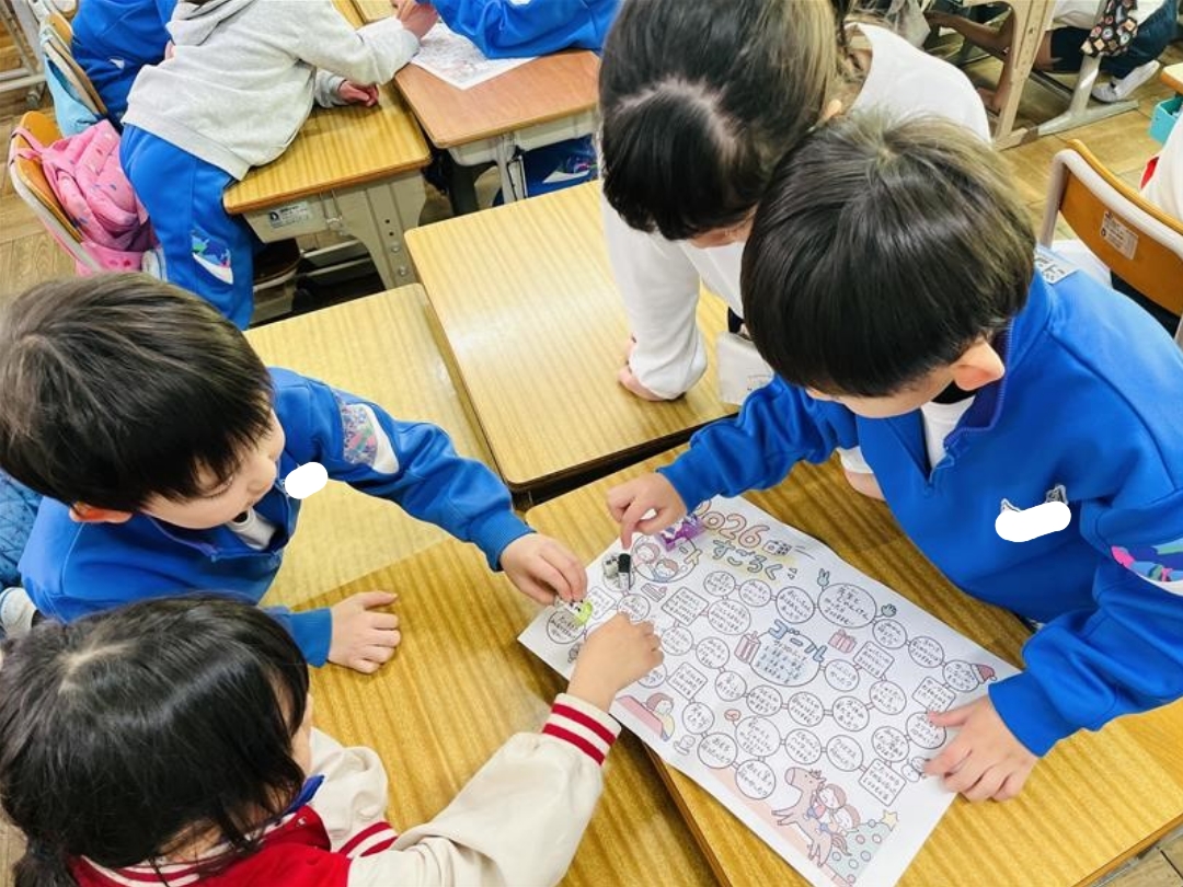2026年、どうぞよろしくお願いいたします。今日は久しぶりに友だちに会えて、うれしそうな姿が見られました。学活の時間には、グループで年末年始をテーマにしたすごろくゲームをして楽しみました。また、3月までの目標も考えました。かっこいい3年生として進級できるよう、残り3か月、みんなで力を合わせ頑張っていきます!