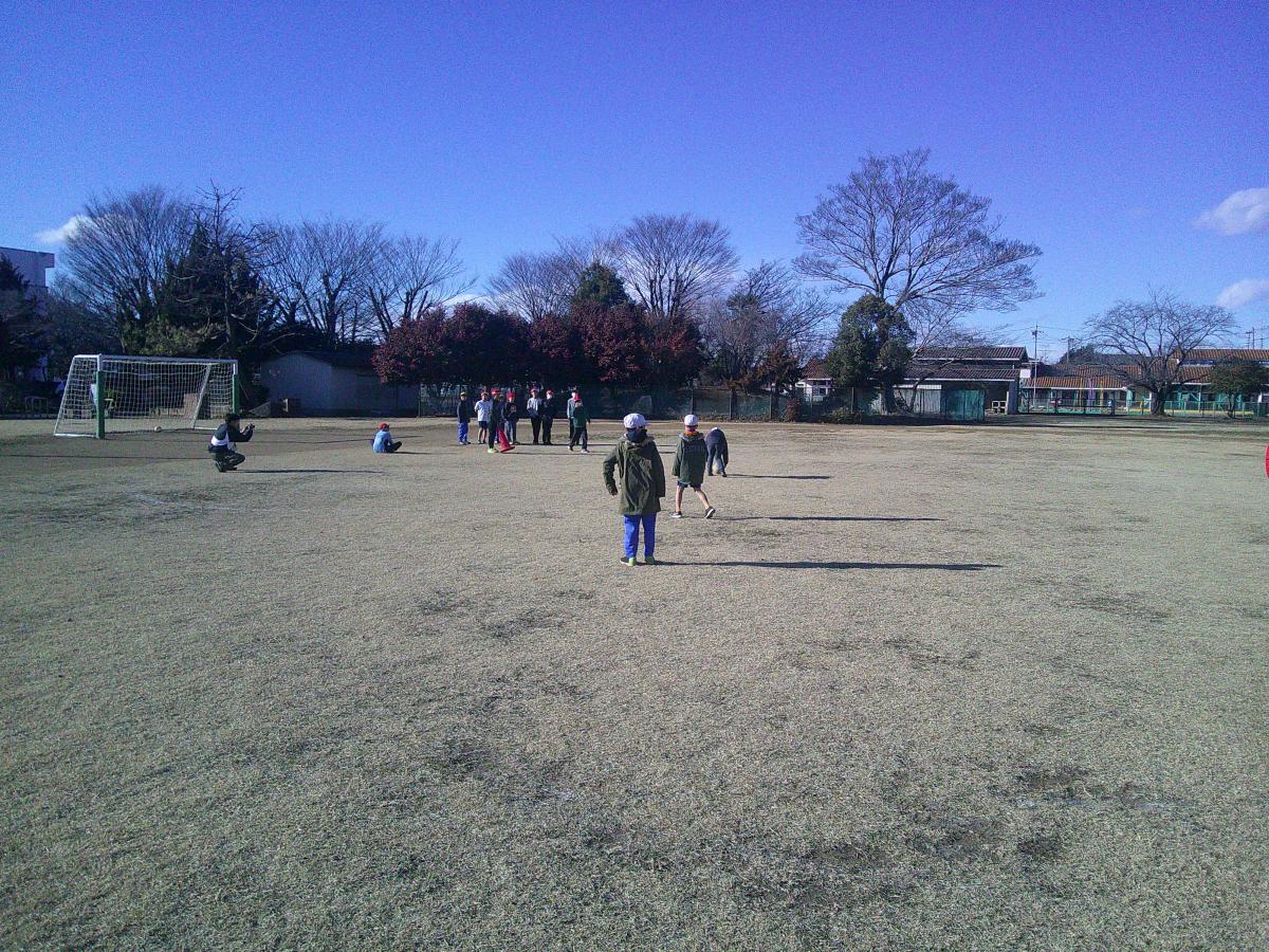 写真は屋外スポーツクラブの活動です。本日は、キックベースを行いました。白熱した戦いで大盛り上がりでした。