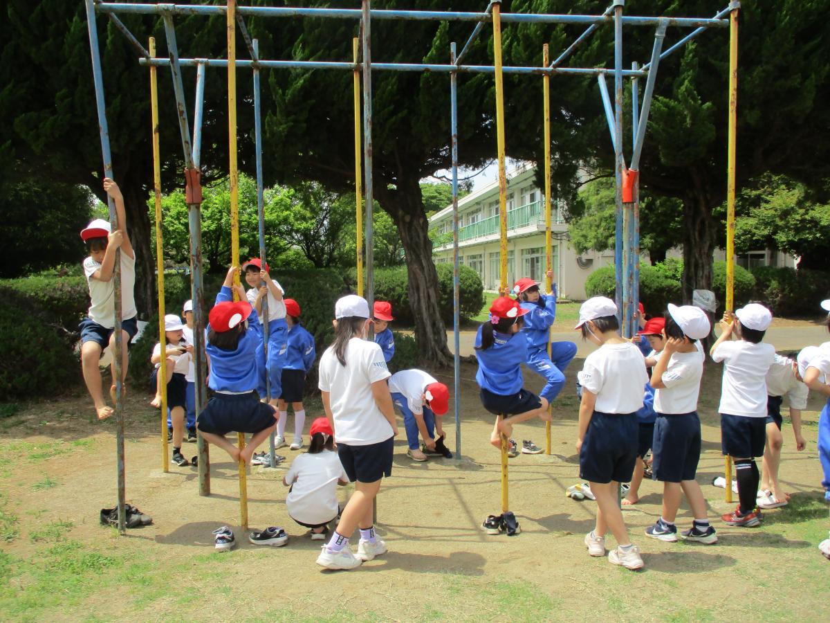 6年生最初の体育では、体つくり運動を行いました。「言うこと一緒、やること逆」や「アップ ダウン ボム」の活動を通して、体力向上を図ったり仲間との交流を深めたりしました。振り返りでは、「これから体力をつけていきたいと思った。」という運動に対して意欲的な姿が見られました。