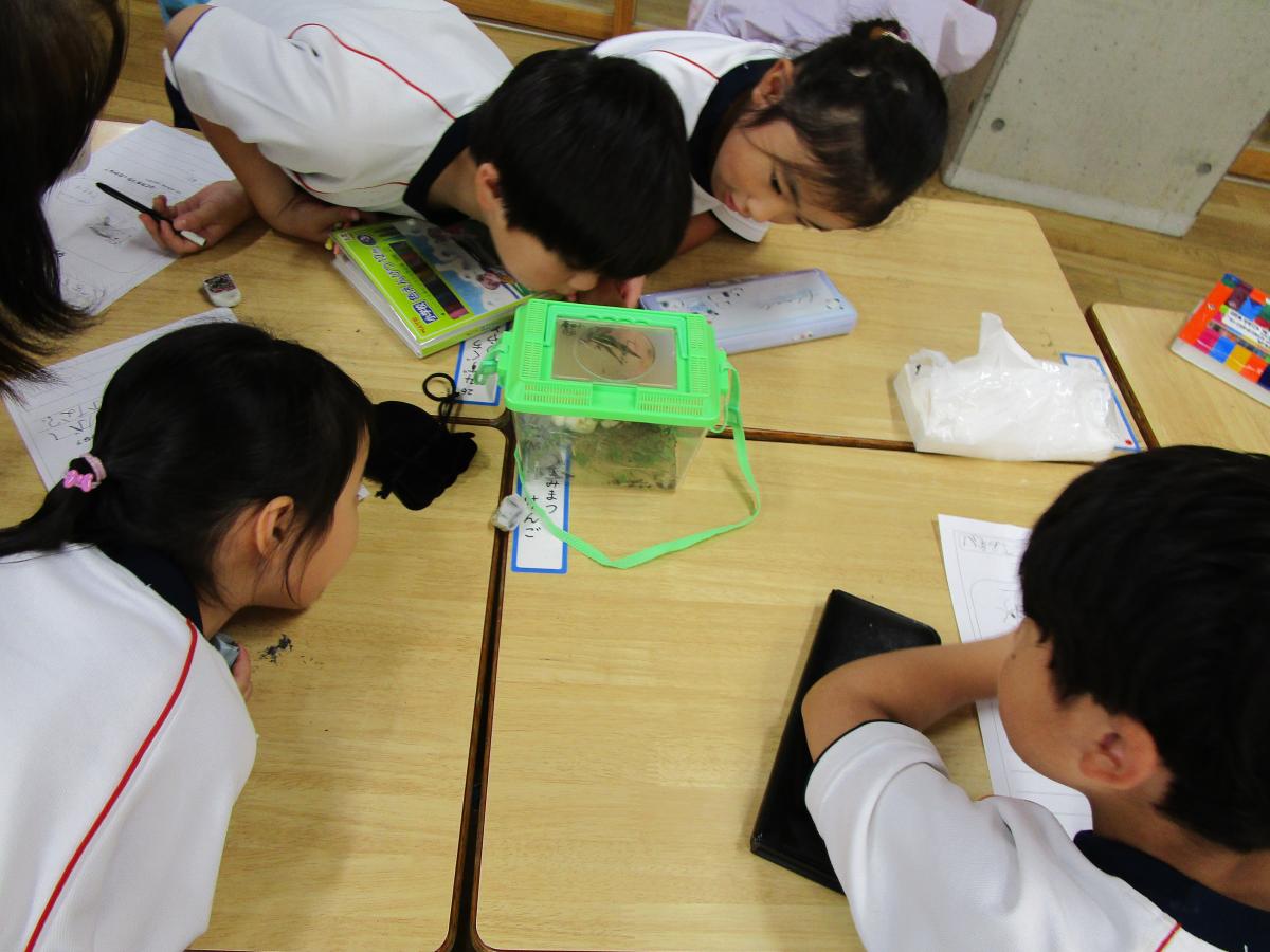本日1年生は、生活科の学習で、昆虫の観察を行いました。