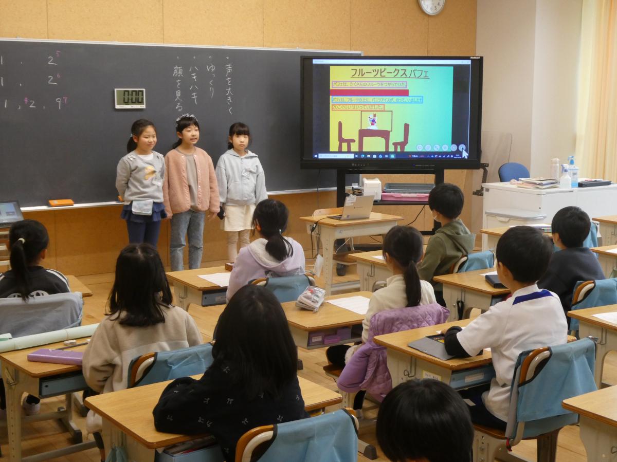 分かりやすく発表することができました。発表を聞きながら、他のクラスが探検したお店にも興味津々な様子でした。