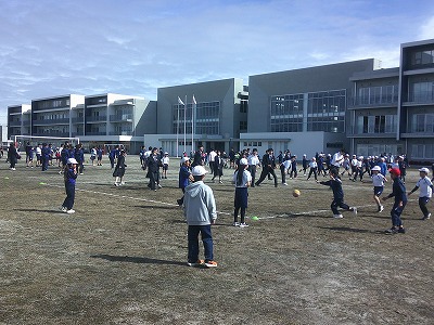 昼休み、中学校側の校庭で、中学生の有志と小学3年生がドッジボールを楽しみました。中学校の体育委員会が主催してくれた取り組みで、みんな真剣そのもの。