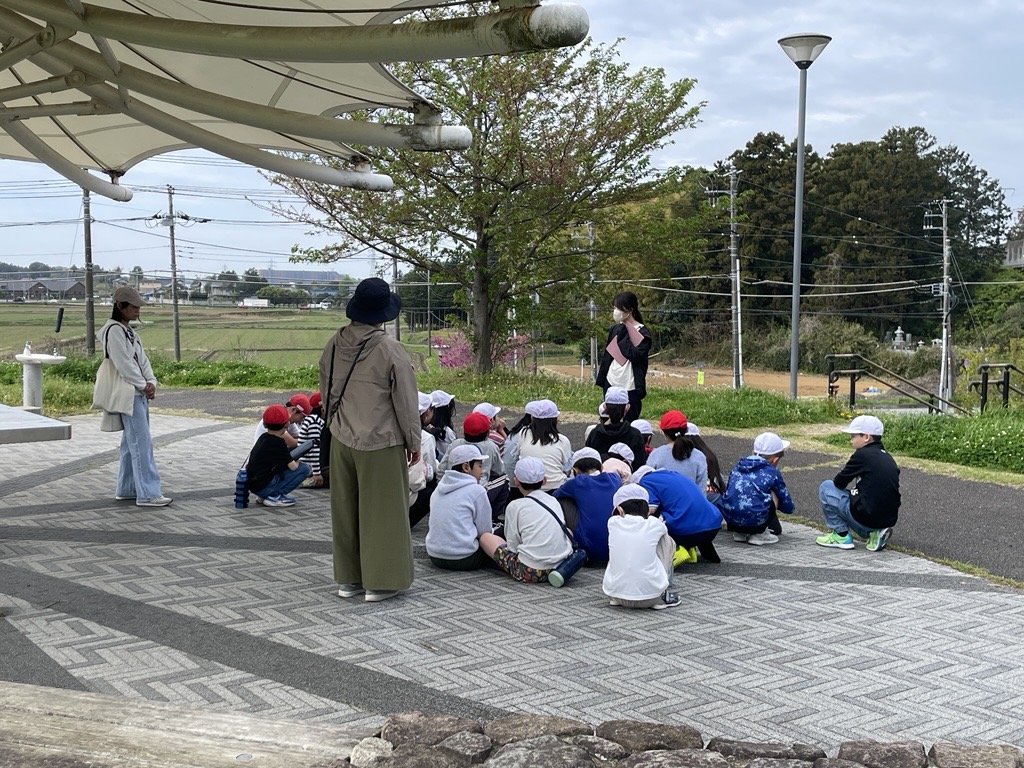 満開の花々や芽吹いたばかりの柔らかな芝生に囲まれ、子どもたちは「春の音」や「春の匂い」を肌で感じながら、どんな絵をかこうかと楽しそうに話していました。この学習では、自然の中で五感を使うことで豊かな感性を育み、季節の小さな変化を捉え、表現する楽しさを学びます。