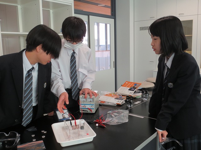 電流が流れている導線やコイルのまわりでは何が起こっているかを調べるために実験に取り組んでいました。導線やコイルのまわりに鉄粉をまくと、模様ができ始めました。視覚化されると理解が深まりますね。※「カテゴリー 学校からのお知らせ」をクリックしていただきますと、掲載されている他の写真もご覧になれます。