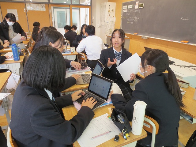 どうずれば自分たちの学校がよりよくなるかを 「I wish~」「If it~,I~」の文型を使って、まず一人一人が5分で考えました。そして、グループごとに発表し合いました。