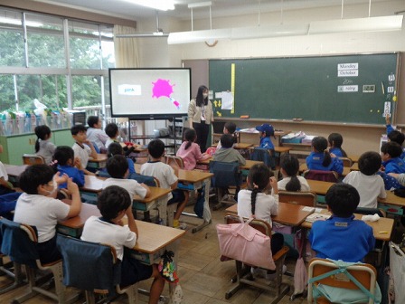 二学期になってALTが新しい先生になりました。2年生でも早速、新しい先生の授業です。先生の自己紹介を兼ねながら、”Do you like ~?”の表現を学習していました。先生の好きな色やスポーツなどをみんなで当てながら楽しく授業が進んでいました。