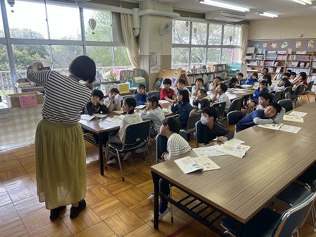 今年度初めて、図書室に行きました。司書の先生が読み聞かせをしてくれました。みんな夢中になって聞いていました。そのあとはお待ちかねの貸出です。熱心に借りる本を選んでいる様子から、とても楽しみにしていたことが伝わってきました。