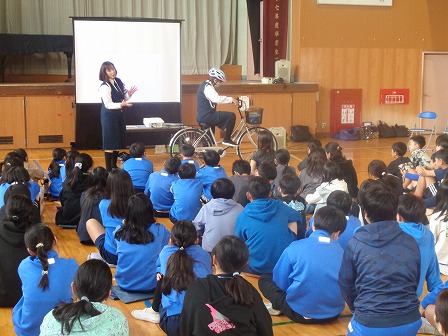 お話をききました。自転車の乗り方などの説明を真剣に聞いていました。御家庭でも交通安全についてお話をするきっかけになれば幸いです。