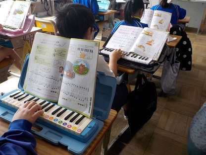 2年生は、歌声と楽器の音をあわせて演奏する練習をしていました。