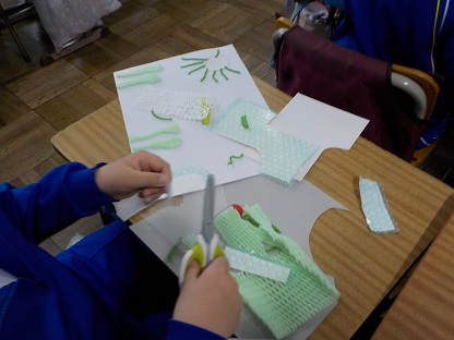 3年生は、切り張りした後にインクを付け作品を仕上げるようです。どんなふうに出来上がるのか楽しみです