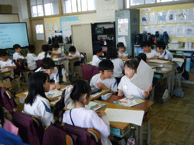 10月2日(木曜)、2学年生活科の時間です。1年生を招待し、一緒に手づくりのおもちゃで遊ぶための計画を立てています。はじめに、お店の名前をグループのみんなで考えました。店名が決まったら、お仕事の役割分担です。得意なことを生かし、やりたい仕事を選ぶなど、積極的に話し合っていました。