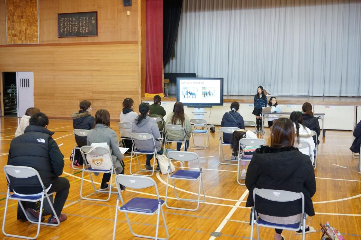 来年度入学する児童の保護者に向けての説明会です。生活の様子や持ち物、欠席連絡の仕方や入学式のことなどの説明がありました。学校の様子については代表児童が発表しました。