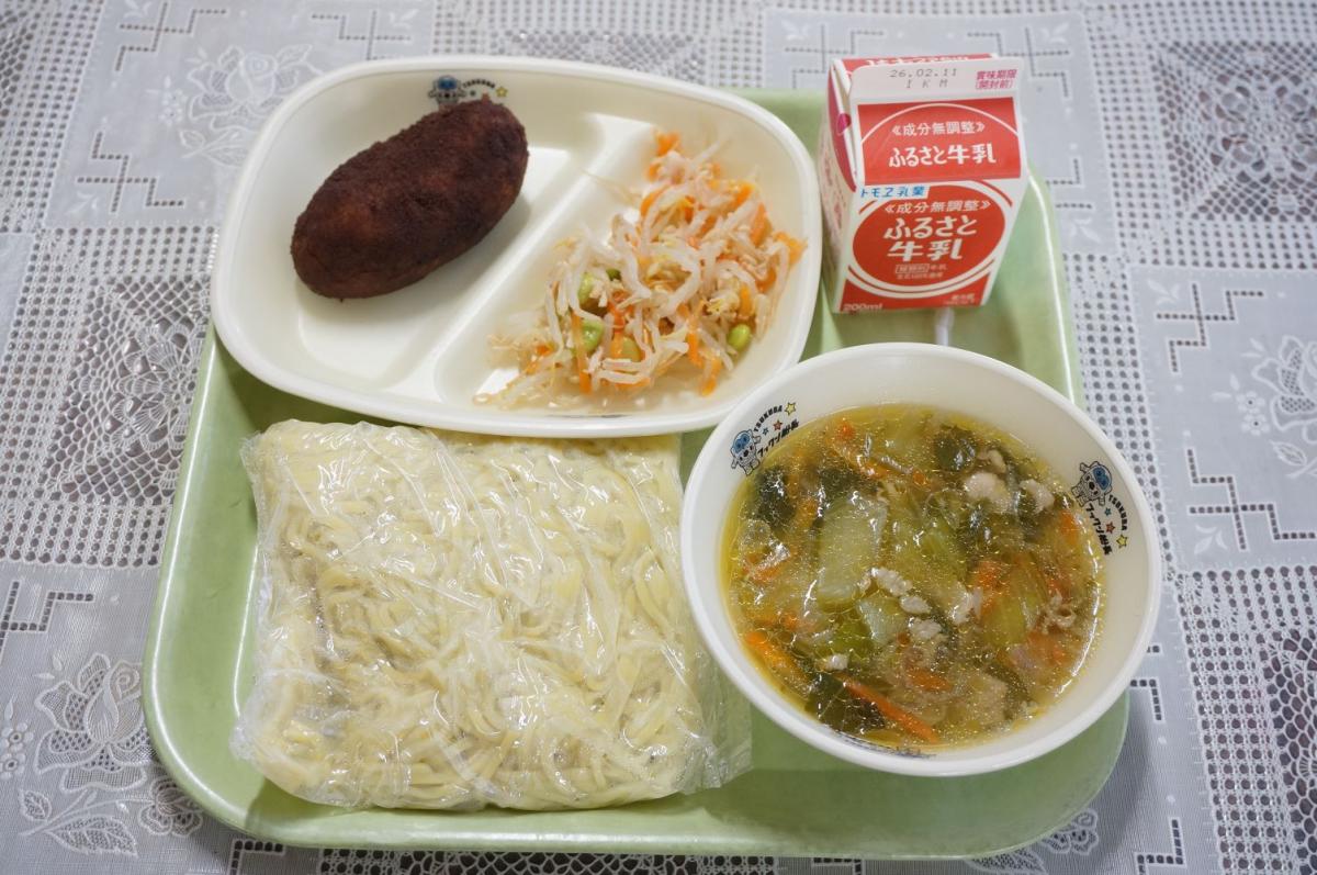 今日の給食は、ふくれラーメンです。ラーメンのスープに、ふくれみかんの陳皮が使われています。11月14日に食育で3年生が皮とへたと中の果肉に分けた時の皮を使っています。