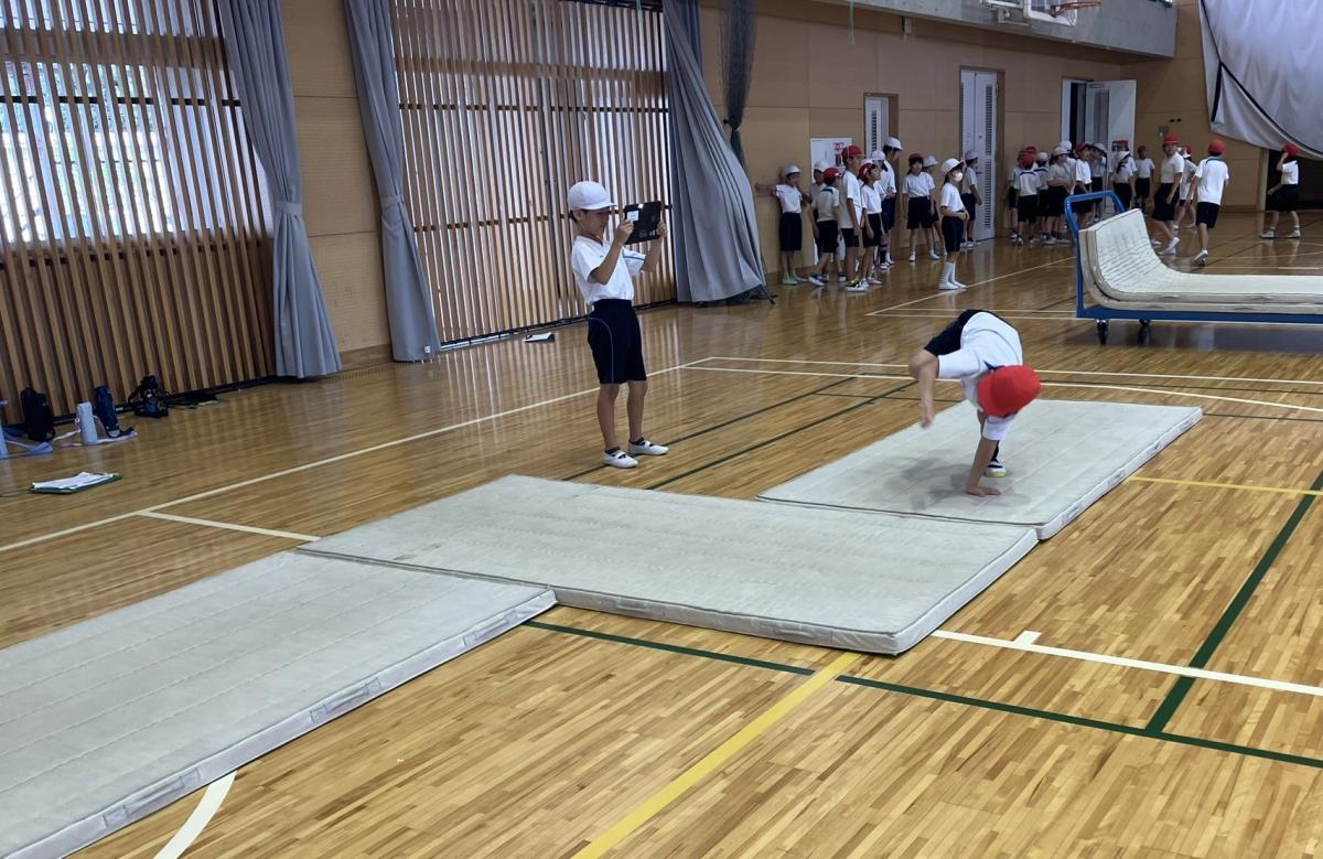 体育では先週までマット遊びに取り組みました。前転がりや後ろ転がりなどの基本の技を練習したあと、マットをつなげて連続技にも挑戦しました。今週からは、外でのボール蹴り遊びに入ります。涼しくなってきたので、たくさん体を動かすことができそうです!