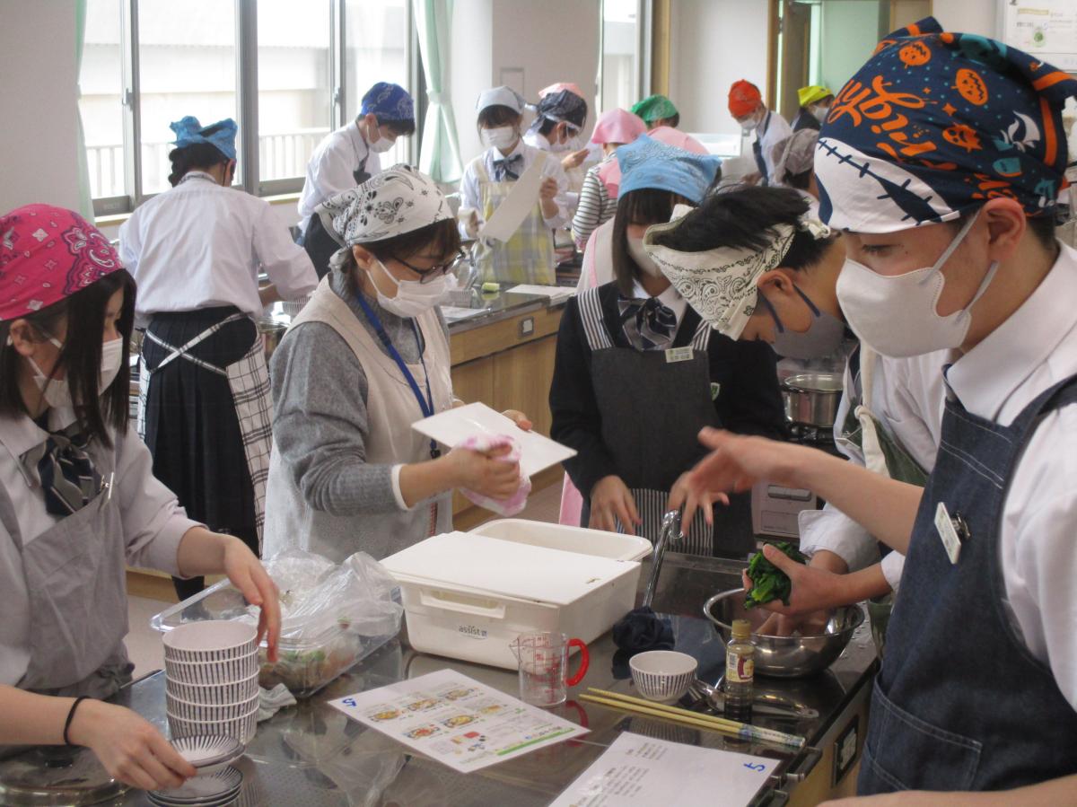 外部講師の3人の先生に包丁の使い方などをサポートしていただき、彩りよく仕上げることができました。