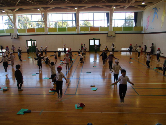 体育の授業では、寒さに負けず、縄跳びを頑張っています。