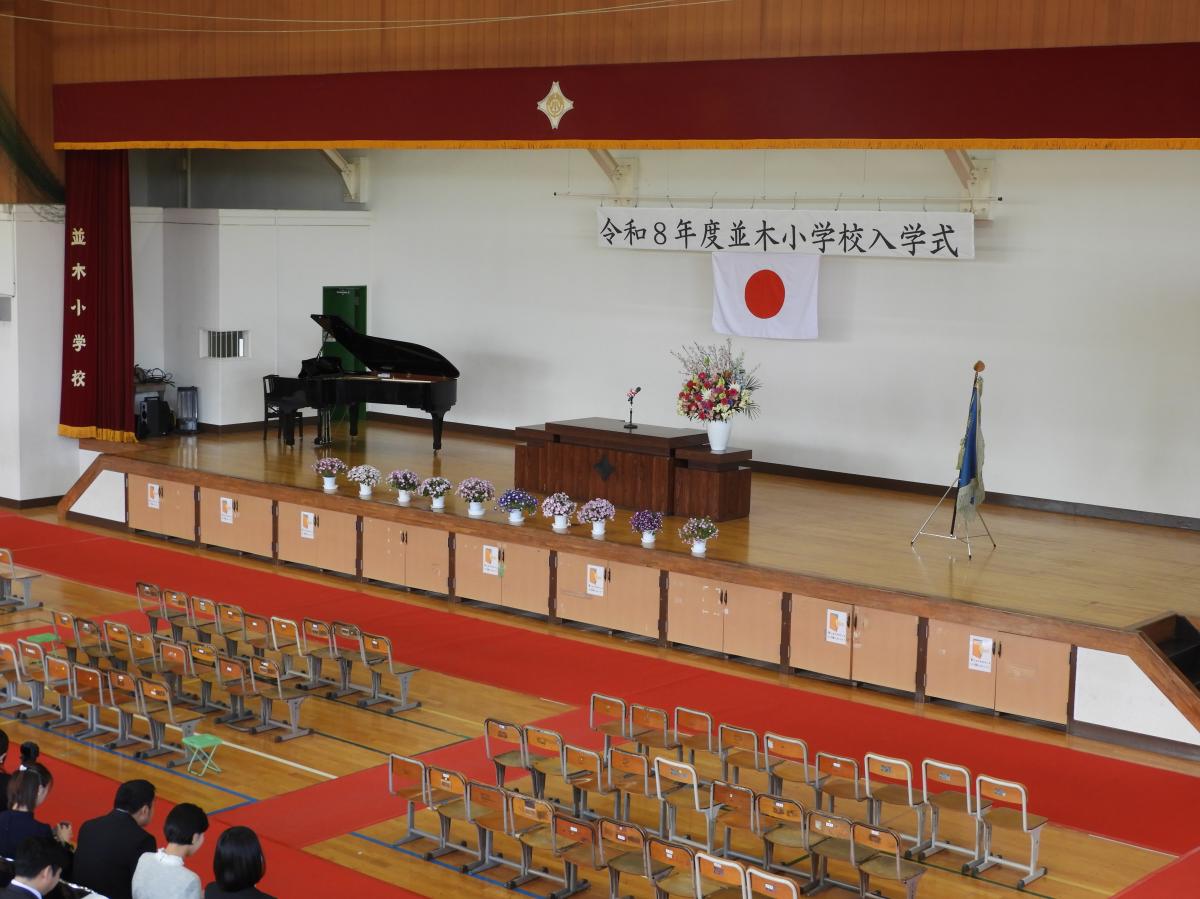 緊張と期待を表情に浮かべながら、入学式を臨んだ1年生。1人も休むことなく、全員そろって参加することができました。並木小学校での生活がとても楽しみですね。