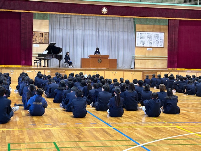 本日、9年生は修学旅行に向けた出発式を行いました。実行委員を中心に、安全で楽しく学びの多い修学旅行になるよう確認をしました。