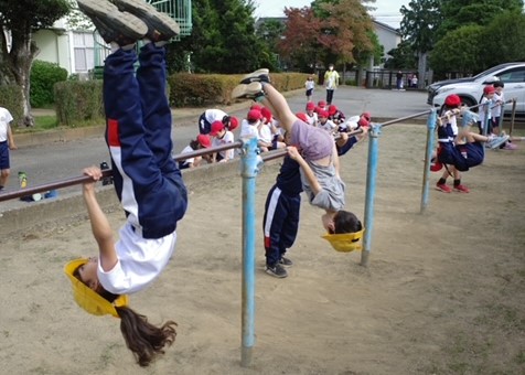 「先生、見て見て!」と、鉄棒のところから1年生が大きな声で呼んでいます。すぐに駆けつけると、たくさんの1年生が、自分の身長とさほど変わらない高さの鉄棒で、上手な逆上がりを披露してくれました。またその周りでは、まだできない子が一生懸命練習していました。できなかったことができるようになった子はすごい、そして、できるように努力する子もすごい。その姿に、とてもうれしい気持ちになりました。