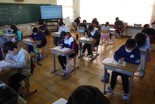 今日と明日、4年生から6年生は、県学力診断のためのテストに取り組んでいます。各教室では、子供たちが真剣な表情で問題に挑戦していました。これまで一生懸命学習に取り組んできた成果が発揮できることを祈っています。
