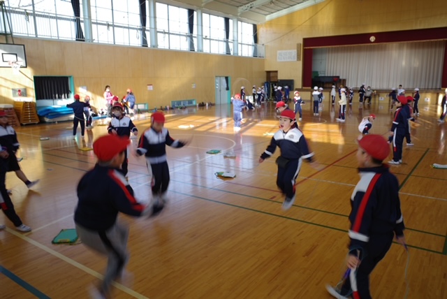 「できた!」「すごい!」「頑張れ!」と体育館から気持ちのこもった声が聞こえてきます。縄跳び検定期間が始まり、子供たちはいろいろな跳び方で、1回でも多く跳べるよう、連日夢中になって挑戦しています。一人一人達成状況に違いはありますが、それぞれの目標をクリアーした時には、みんなで喜び合う姿に心がほっこりします。より高い目標を目指して、ファイト!