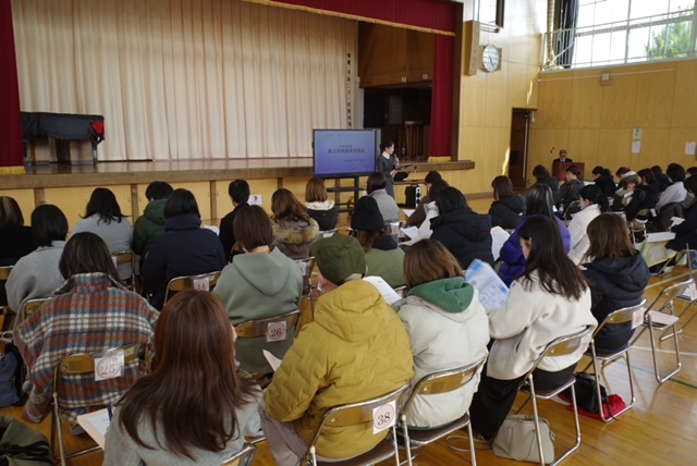 本日、令和8年度新入生保護者説明会が体育館で行われました。この冬一番の寒さとなりましたが、新入生保護者の皆様にお集まりいただき、入学までの諸準備や入学後の学校生活に関わる様々なことについて確認しました。小学校への入学は、「友達はできるかな?」、「勉強は大丈夫かな?」など、児童も保護者も不安がいっぱいです。学校も保護者も地域の方々も、栄小に通う子供たちを支える同志として、学校と保護者との連携やサポーターズ活動をはじめとする保護者同士の関わり合い、地域とのつながりを通して、その不安を安心に変えていきたいと思っています。
