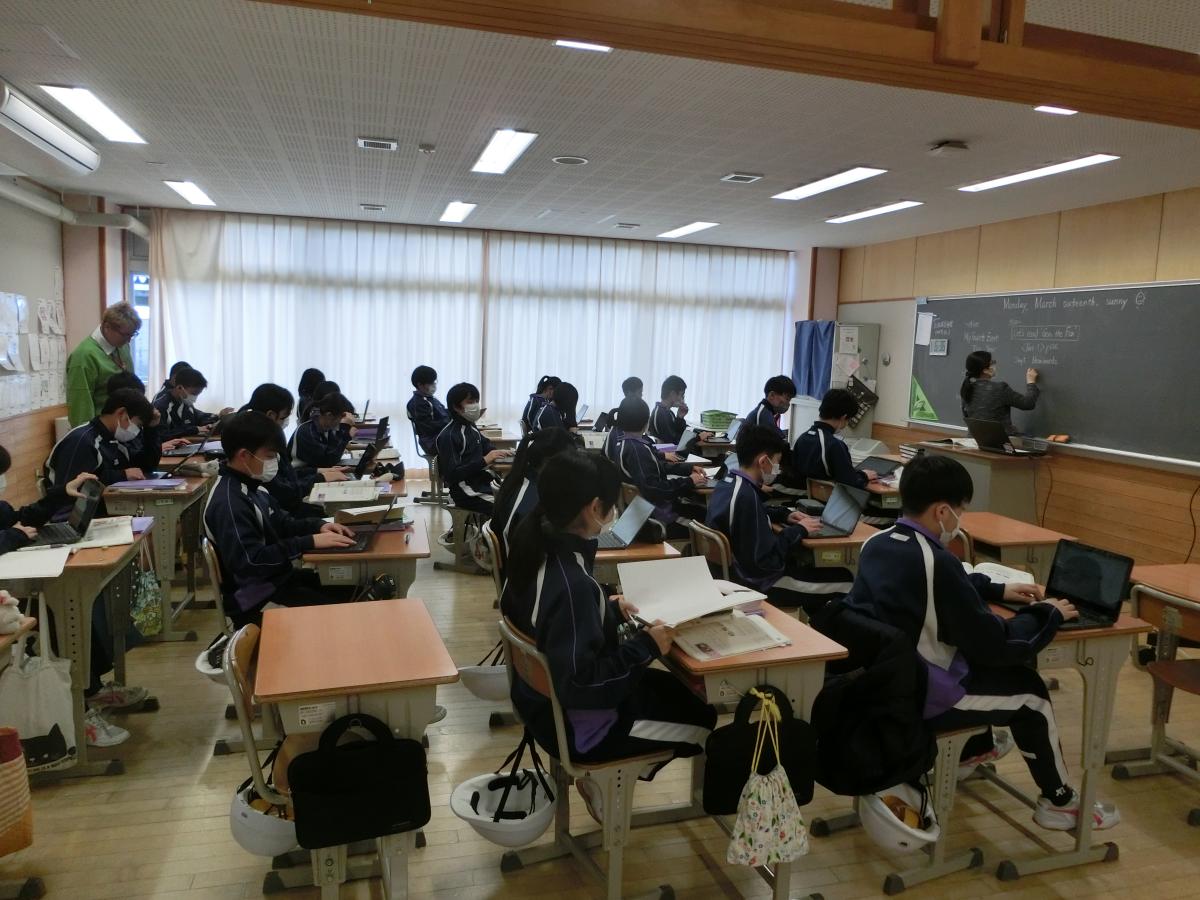 今年度の授業日も残すところあと5日になりました。各学年各教科とも1年間の学習のまとめ等を授業で行っています。先日GIGA端末がリニューアルした7年生は、最後の単元で「My Favorite School Event」というタイトルで、英語で原稿を作成していました。1年間の成果が表れた内容の英文が完成することを期待したいと思います。