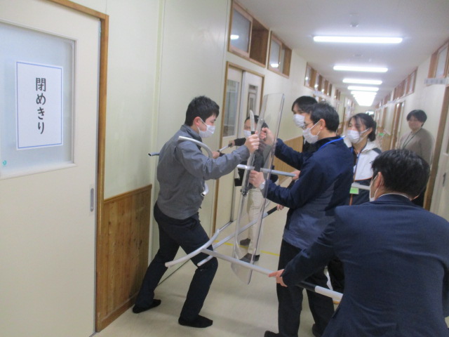 警察署の方から、対応した職員にはさすまた、シールドの使い方、生徒にはバリケードの作り方を教えていただきました。