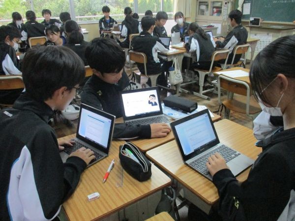 本日(29日)の5・6校時、学校薬剤師の先生にお越しいただき、9年生の薬物乱用防止教室が実施されました。