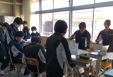 本日(2/12)6時間目の学活の時間に、修学旅行タクシー班の顔合わせを行いました。役割分担を決めたあと、班の皆で見学したい場所やタクシーでまわるルートについて話し合っていました。班ごとにどんな見学コースができるか楽しみです!