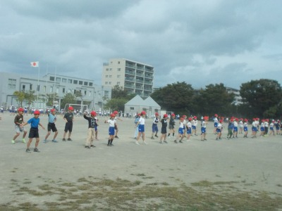 運動会全体練習「大玉転がし・応援合戦」全体