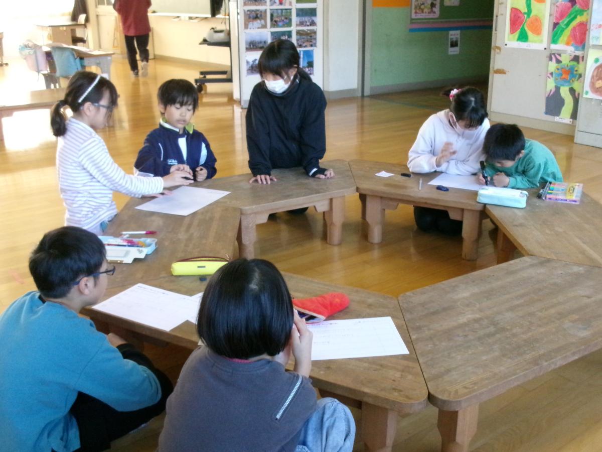 昨日、幼稚園児をお迎えして、秋を楽しむ会の企画のリハーサルを行いました。縦割り班ごとにみんなで協力しながら準備し、実際の動きを確認しながらやってみました。幼稚園児にはとても楽しんでもらえたようでした。自分たちだけでなく、来ていただいた方に楽しんでいただくにはどうしたらよいかという視点で、よかったところや改善点を話し合い、当日に向けて自分の目標を立てました。今日は昼休みに足りないところや改善したほうがよいところについて再度確認し、準備をしている班もありました。本番はいよいよ明後日です。たくさんの人に楽しんでいただけるようみんなで力を合わせ、頑張ってほしいと思います。