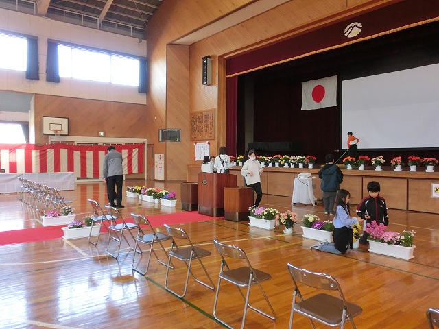 明日はいよいよ6年生が本校を卒業する継志式です。5、6時間目には4・5年生が力を合わせ、会場準備を行いました。