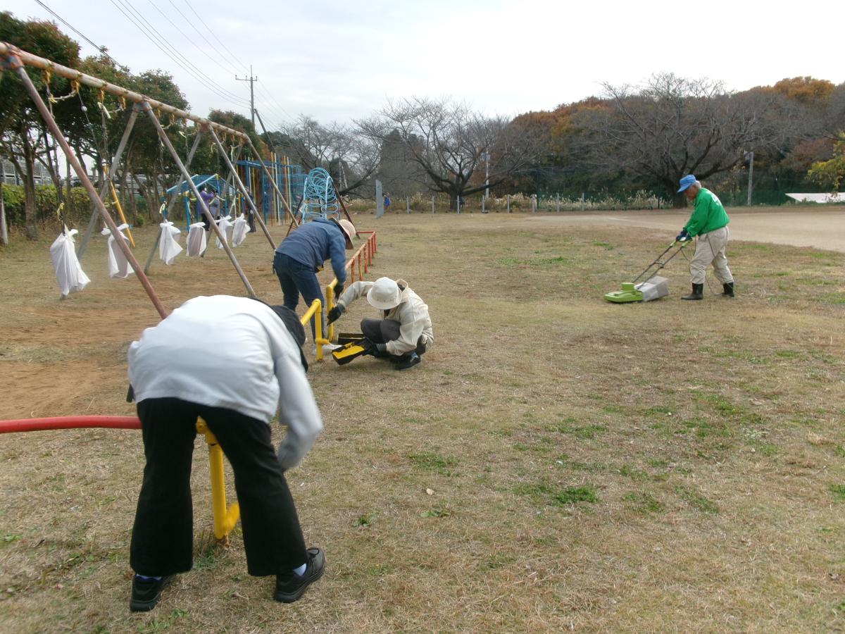 昨日、地域の方のご協力をいただき、学校の遊具のペンキ塗りを行いました。参加していただいた皆さんで、雲ていやブランコなどの色が落ちてるところを丁寧に塗っていただきました。その他、芝刈りや草刈りなど、子どもたちが気持ちよく学校生活を送れるように14名の方がご協力くださいました。本当にありがとうございました。