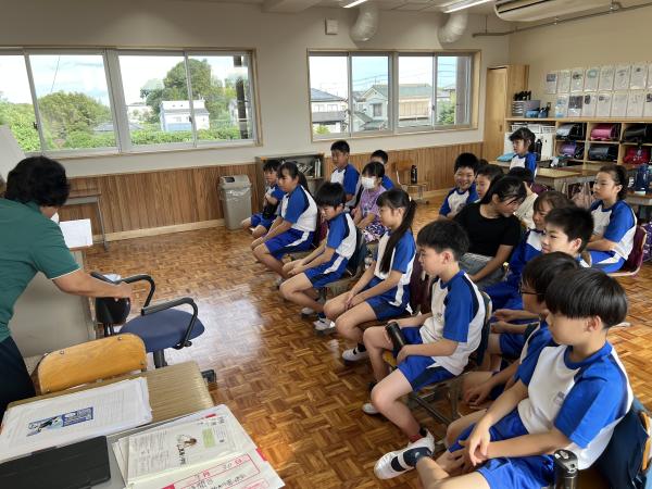 今週は「おはなしの森」の方をお招きし、昨日は1~3年生、本日は4~6年生を対象に読み聞かせを行っていただきました。