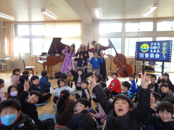 3校時に1~3年生、4校時に4~6年生に分かれて、「タネも仕掛けもある音楽会」を鑑賞しました。