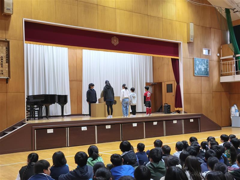 児童集会が行われました。代表委員会の進行のもとに、3つの委員会が発表をしました。