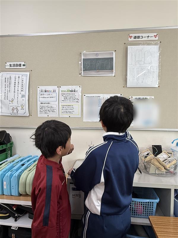 先日の島名っ子タイムでの一場面です。教室を移動する際に、2年生の児童が、自分の班が分からなくなってしまったようです。すると近くにいた5年生が声を掛け、教室に掲示している名簿を確認しながら教えてあげていました。もう少しで、6年生に進級する5年生の成長を感じることができ、あたたかい気持ちになりました。