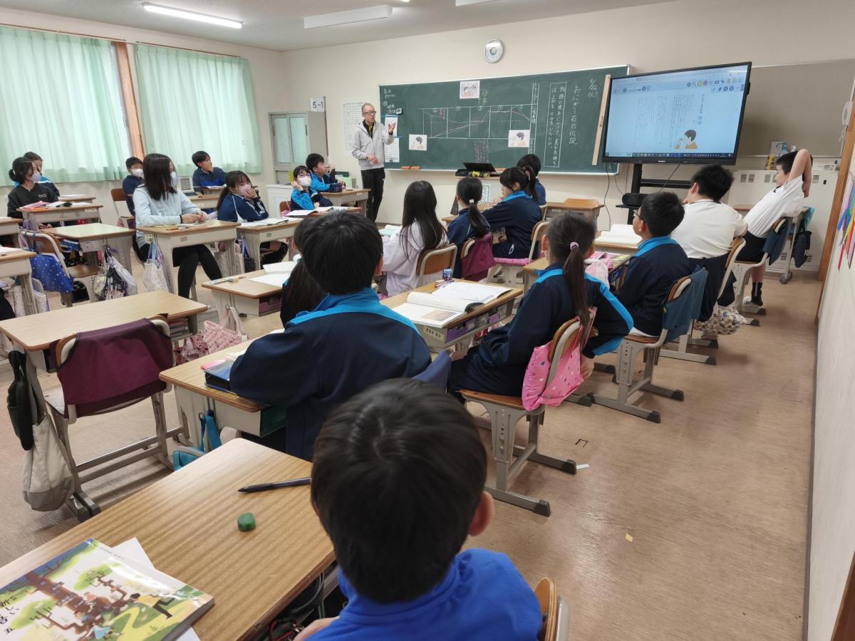 国語の学習では「おにぎり石の伝説」という物語について深く考えました。登場人物の気持ちの変化についてクラス全体で話し合いました。
