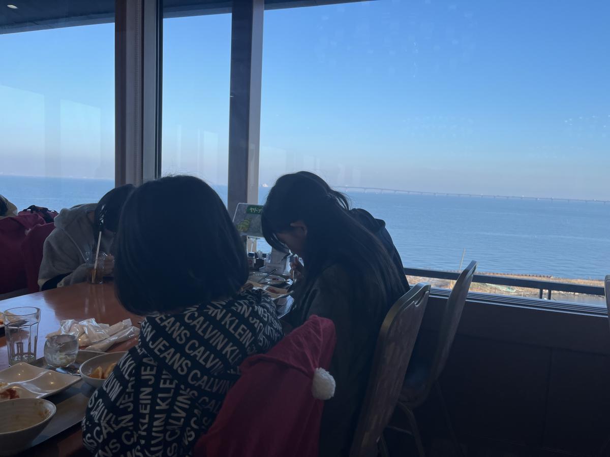 国会議事堂へ向かう途中、海ほたるで休憩です!ここ数年、修学旅行の海ほたるは曇りがほとんどでしたが、最高の船出となりました!