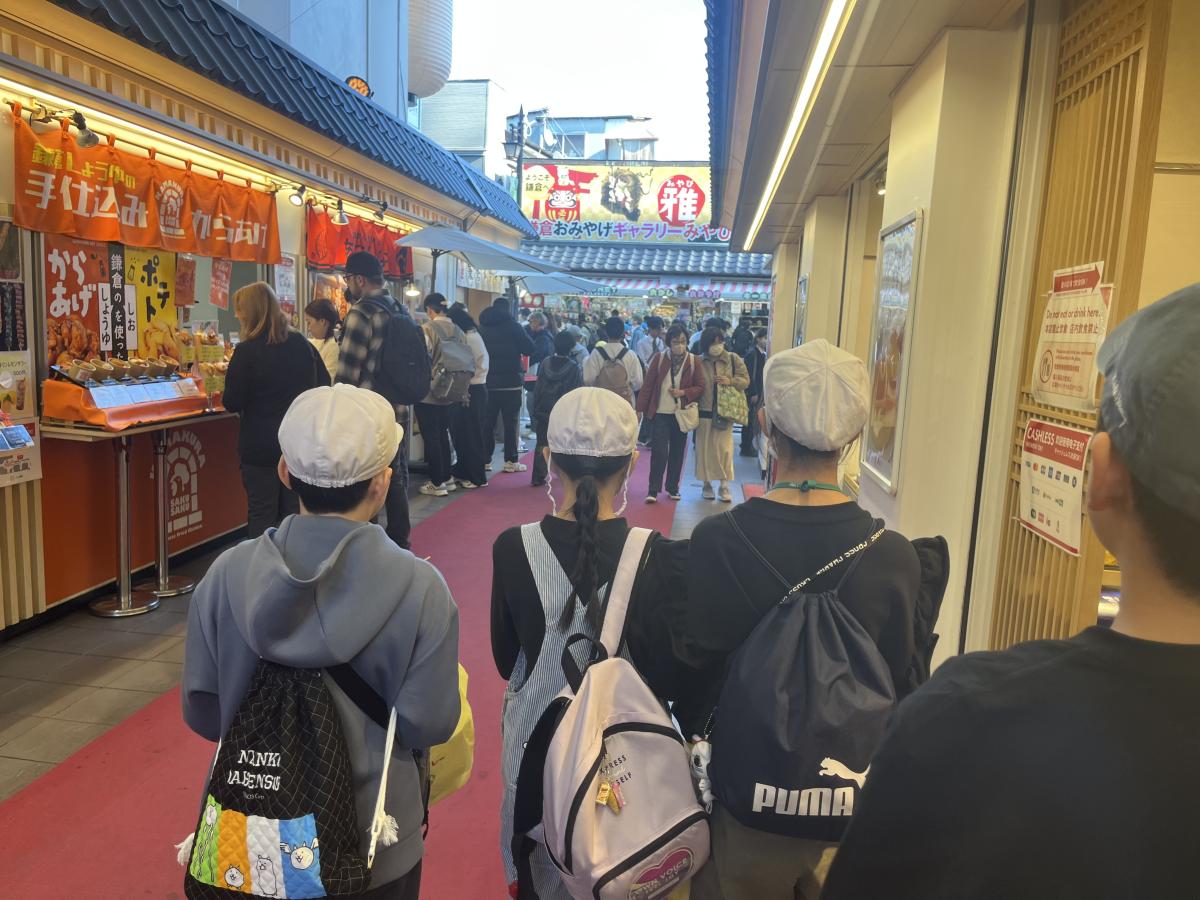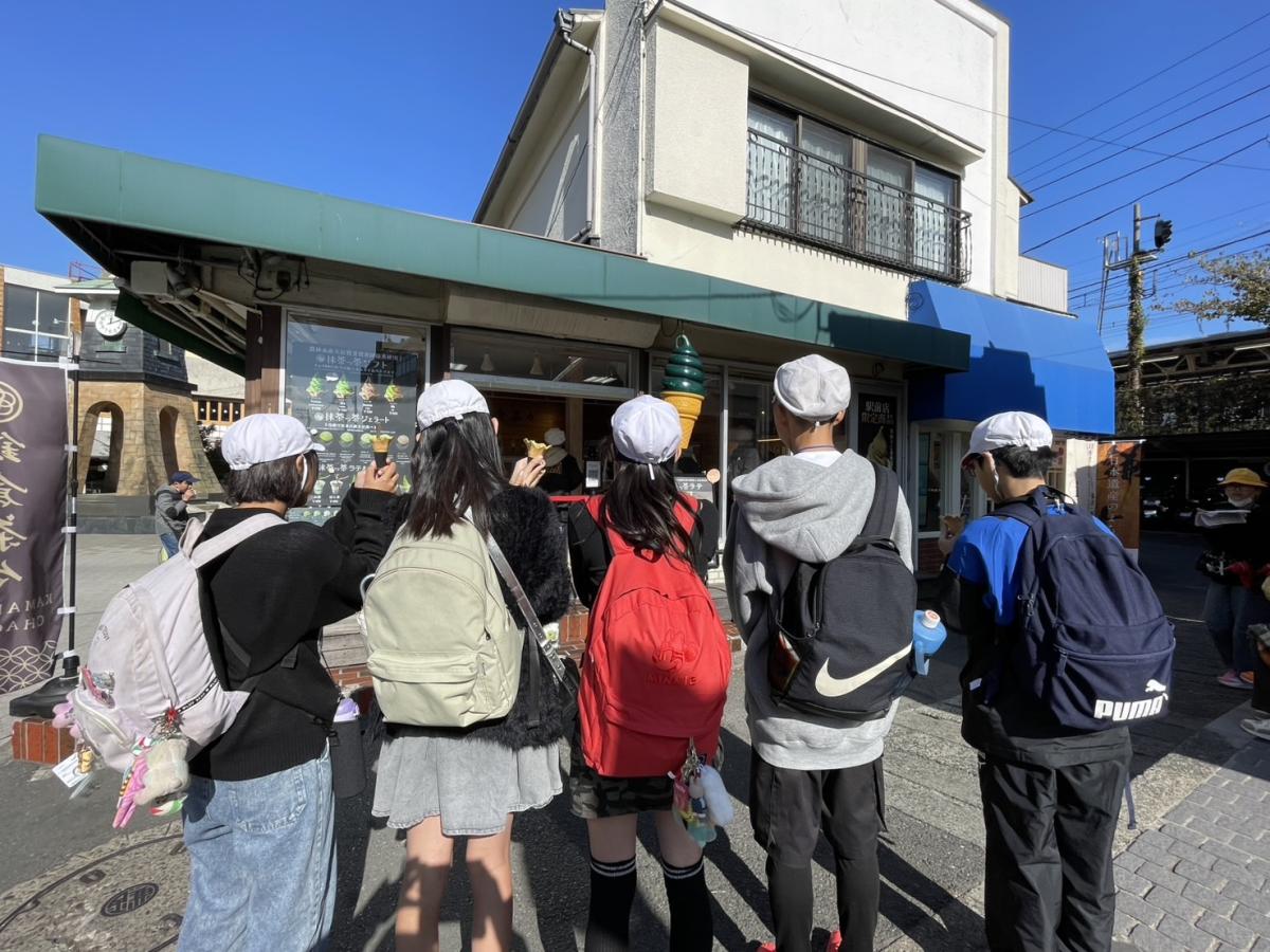 小町通りは人・人・人!!歩くのも注意しなければなりません。同様にお土産屋さんや食べ物屋さんも目白押し! 気温も温かく、ソフトクリームを食べるのもいいですね!