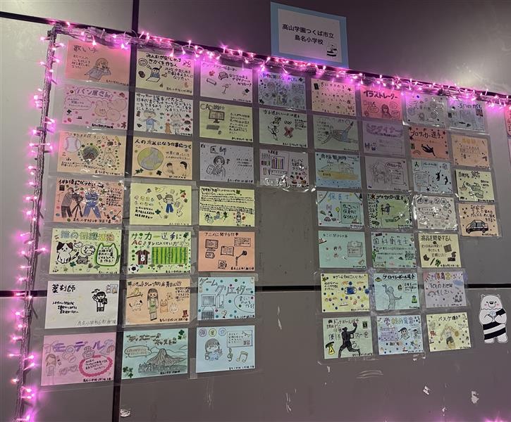 万博記念公園駅で6年生の将来の夢カードが掲示されています。綺麗なイルミネーションに囲まれてひとり一人の夢が光り輝いています。お時間のある方は是非、素敵なイルミネーションと共に将来の夢カードを見に来てください!!