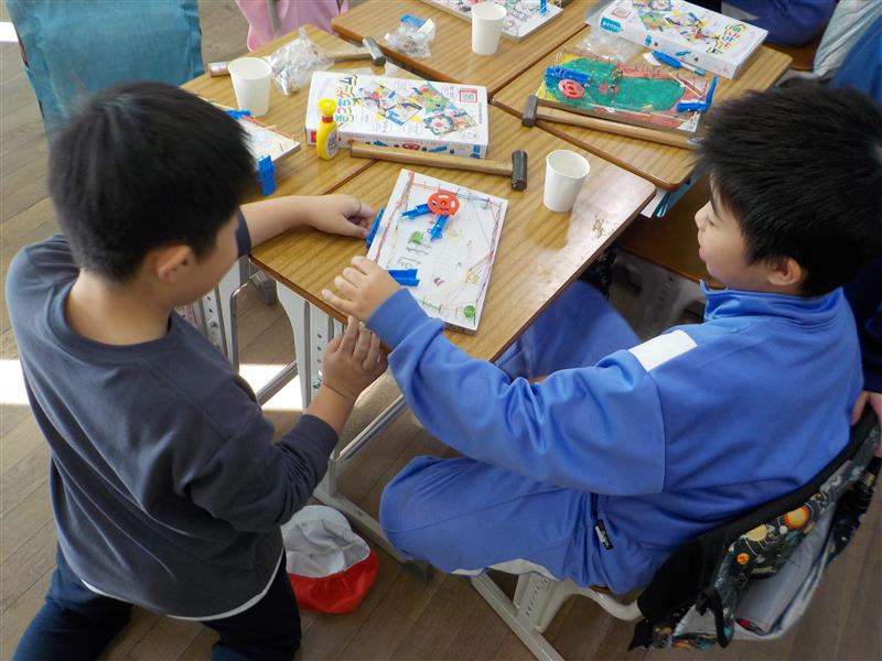3年生は、図工の時間でくぎうちゲームを作りました。